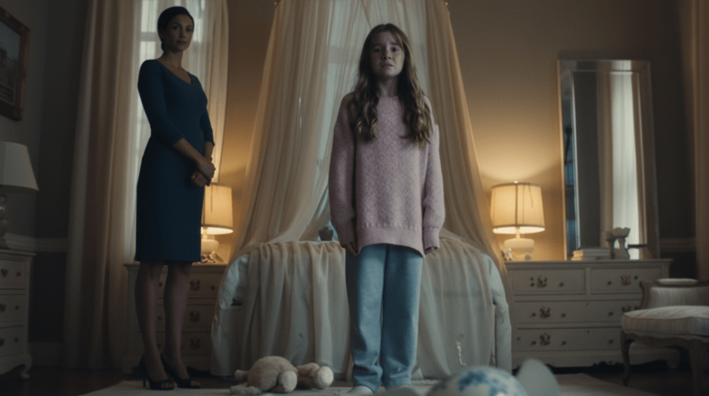 But now, hearing the crash of porcelain and Lily’s furious shouting, hope felt fragile. Michael raced upstairs, heart hammering, to find Clara standing perfectly still, serene amid the chaos, and Lily trembling, tears mingling with anger over a broken vase.