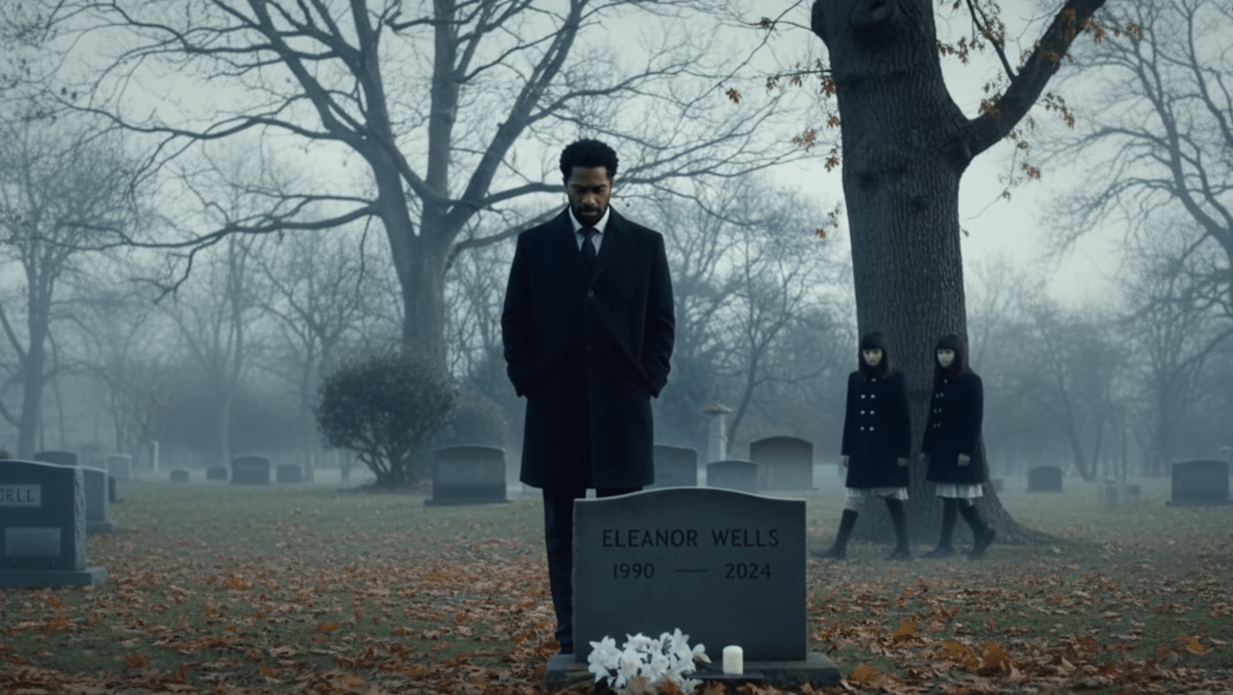 Then he saw them—three girls, standing in unison near an oak tree at the cemetery’s edge. Auburn ponytails, matching navy coats, hands clasped together. They weren’t like the wealthy attendees; their clothes were simple, their gaze unnervingly intense.
