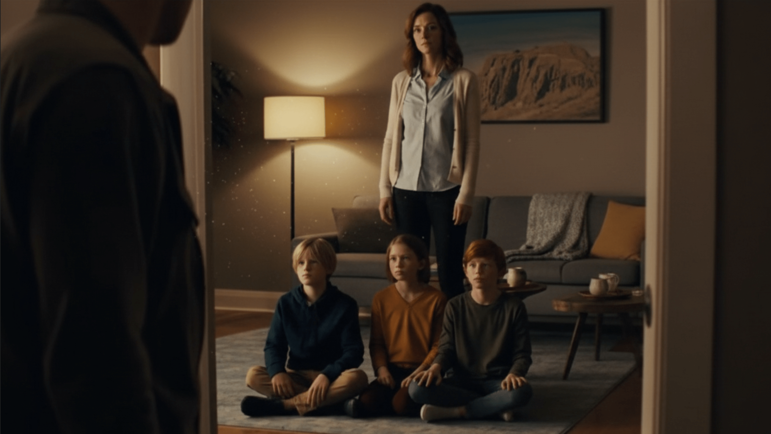 Peeking through the crack, Marcus froze. His children sat in a perfect circle, unnaturally still, hands on their knees, eyes deep and knowing. Amelia, their nanny, sat before them, her posture strangely youthful and energized, speaking in a language Marcus couldn’t place.