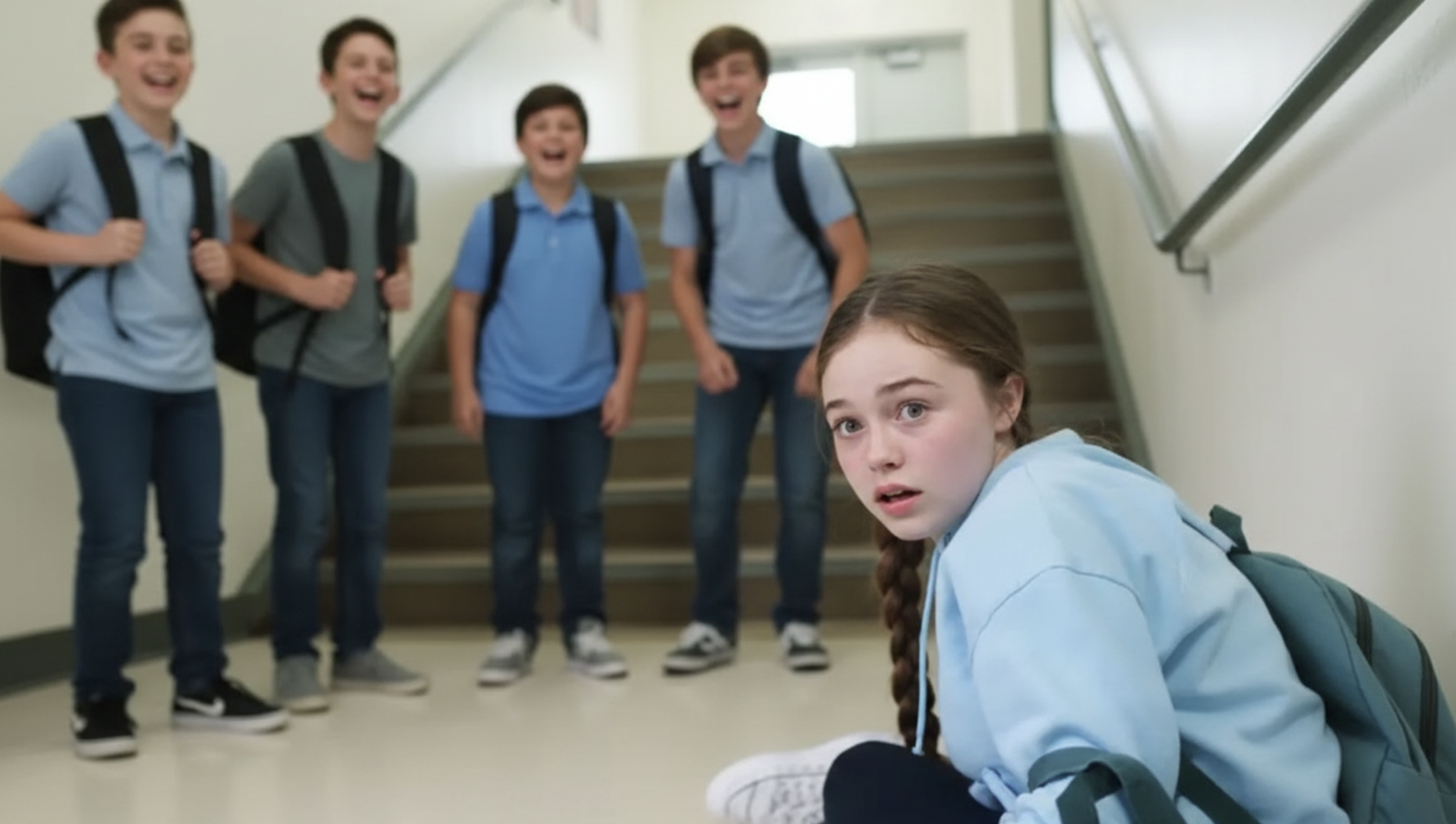 The lunch bell at Oakridge High had barely stopped echoing when I felt a hard shove between my shoulder blades. My feet slipped, and my sketchbook, filled with drawings for my dad, flew from my hands as I tumbled down the stairs. Each step felt like a hammer against my shin, hip, and shoulder until I crashed, gasping for air. Laughter from above was the only response.