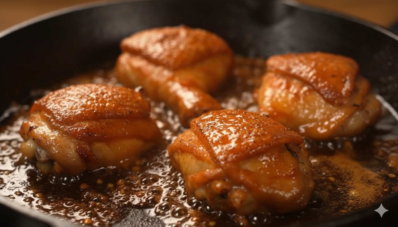 - Sear chicken 4–5 minutes per side until golden brown.