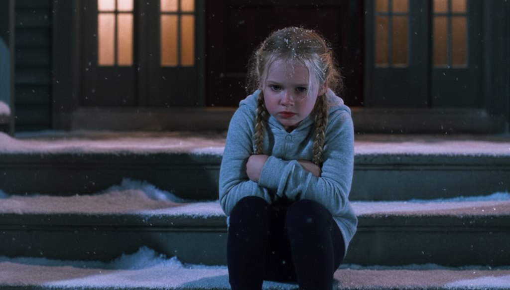 Noah turned. Through the bars, a child sat on the stone steps, knees drawn to her chest, hair wet with snow.