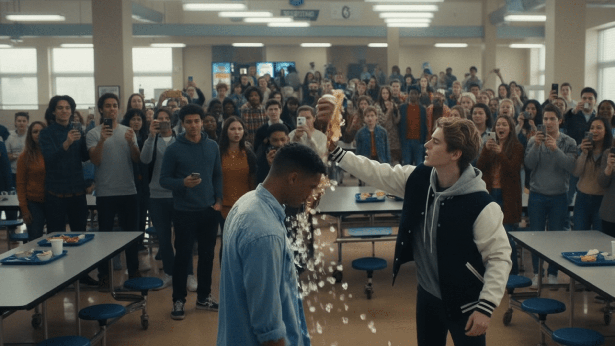 The cafeteria howled. Phones came out like cameras at a crime scene.