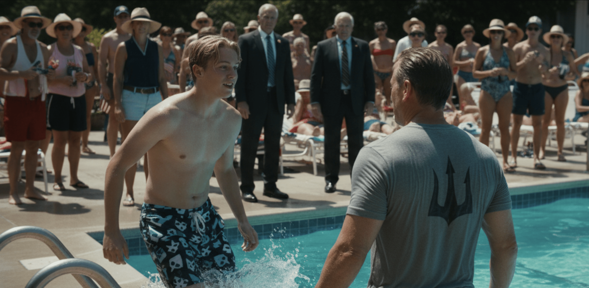 A man near the grill—broad shoulders, American flag swim trunks—stared hard and said, “Holy—”