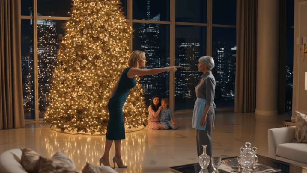 Eight-year-old Emma and six-year-old Jake cowered behind the Christmas tree, watching their stepmother rage at Mrs. Patricia, the only person who’d shown them kindness since their father died.