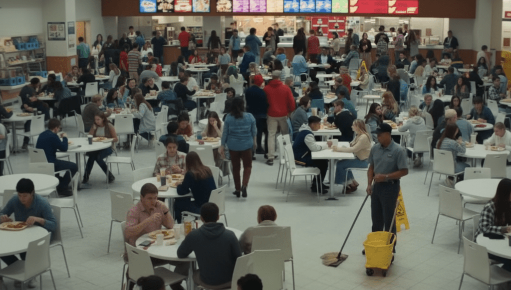 The Saturday afternoon food court buzzed with weekend shoppers. Emma sat across from Tyler at their usual table, picking at her fries.